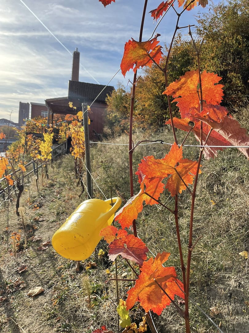 Seither haben wir damit begonnen, die Lücken in den Reihen der vorhandenen Sorten Müller Thurgau (weiß) und Dornfelder (rot) mit den pilzwiderständigen PIWI Neuzüchtungen Cabernet blanc (weiß) und Pinotin (rot) aufzufüllen und eine gute Basis für die künftige Bewirtschaftung gemeinsam mit Nachbar_innen gelegt.